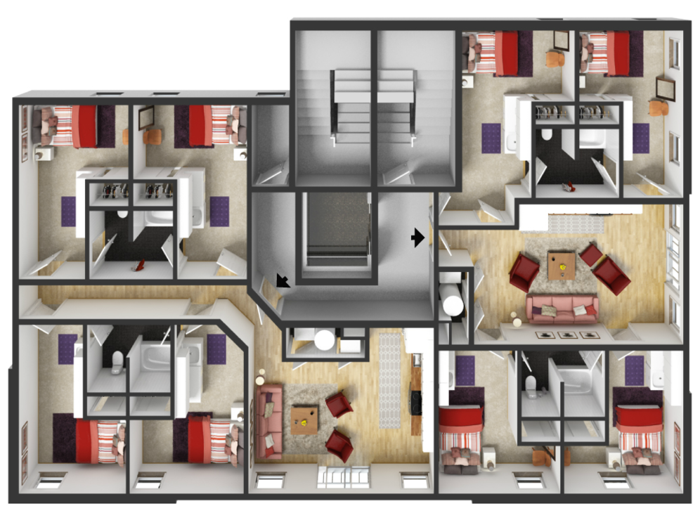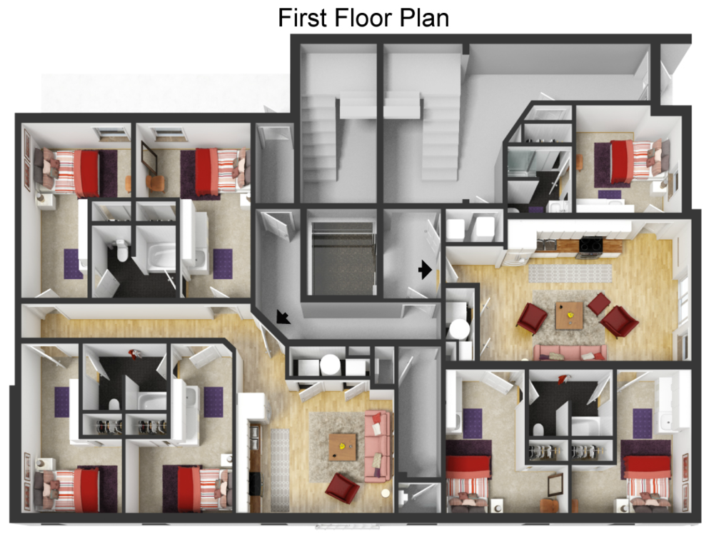 Not only is it student housing near UTC campus, Vine324 sits in the heart of downtown Chattanooga. The majority of floor plans at Vine324 are 4 bedroom, 2 bath. Each resident will have a private sink, but will share other bathroom amenities with a roommate. The bedrooms and common areas are fully furnished, all you'll need to bring are your linens, clothes, and personal touches! Each living space is all inclusive with sleek, modern furniture and efficient appliances, including a flat screen TV and washers and dryers in every unit. All utilities are included: EPB premium Internet and cable, electricity, water, sewage, and trash ($50/mo utility fee is additional to lease amount). Other amenities include individual leases, roommate matching. At Vine324, you will experience both luxury and convenience, all for an affordable price.